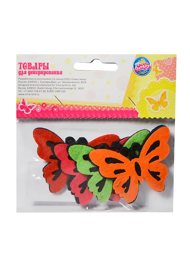 Набор фетровых деталей для декора Бабочки (143868) (4шт) (упаковка)