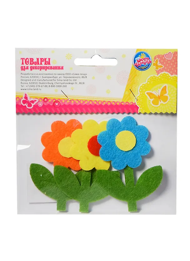 Набор фетровых деталей для декора Цветочки со стебельками (143870) (3шт) (упаковка)