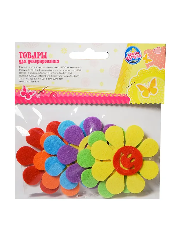 Набор фетровых деталей для декора Ромашки-смайлики (143862) (6шт) (упаковка)