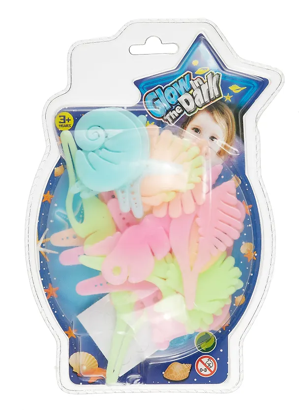 Набор "Светлячки: подводный мир" - удивительная забава! Подержите фигурки под источником света, а затем любуйтесь их свечением в темноте. Фигурками можно украсить любую поверхность (кроме свежевыкрашенных стен и обоев). Просто отрежьте маленький кусочек двусторонней клейкой ленты и прикрепите его к фигурке.