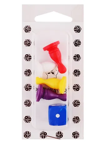 Набор фишки и кубик, фигурный, цвета в ассортименте, фишка - 4 шт (высота 26 мм) , кубик - 1 шт (16 мм).