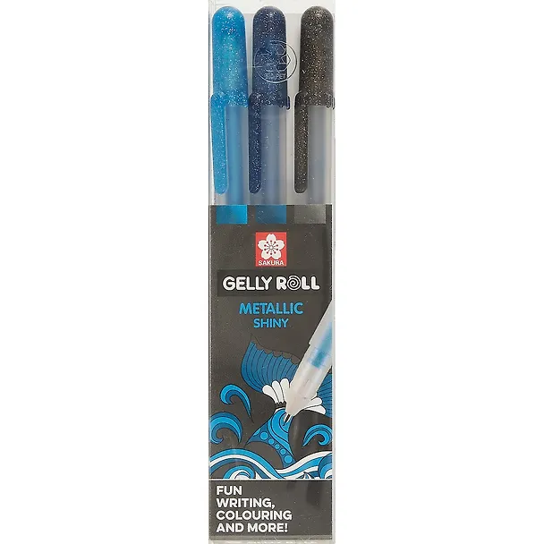 Набор гелевых ручек Metallic "Океан" 3шт. (голубой, синий, черный), Sakura