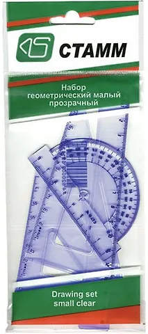 Хороший и недорогой набор в котором есть все необходимое для занятий. Набор выполнен и прочного пластика бледного голубого цвета. В наборе есть линейка, транспортир и два угольника, большой и малый. Ребенок пользуется набором уже целый год и за это время не одна из линеек не треснула, циферки не стерлись. Помимо малого набора покупала такой же большой и оба очень понравились.