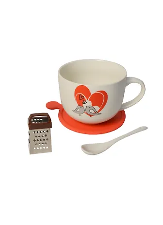 Набор: кружка с ложкой+минитерка+трафарет - один из самых отличных подарков, который изготовлен из фарфора.