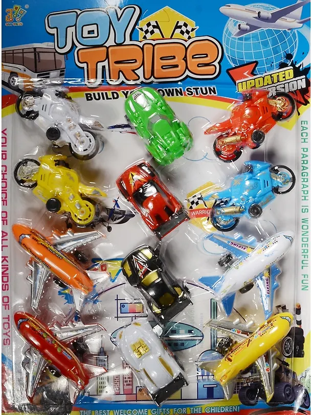 Набор инерц. транспорта (машины/мото/самолеты) (12шт) (15-02297-399-130Н) (блистер)