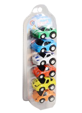 Машинки выполнены из пластика, оснащены инерционным ходом - нужно просто отвести машинку назад, слегка надавив на крышу, затем отпустить - и она быстро поедет вперед. В набор входит 6 гоночных машинок разных цветов - можно устроить настоящие гонки. Ваш малыш обязательно оценит такой подарок по достоинству и с удовольствием пополнит свой "автопарк"!