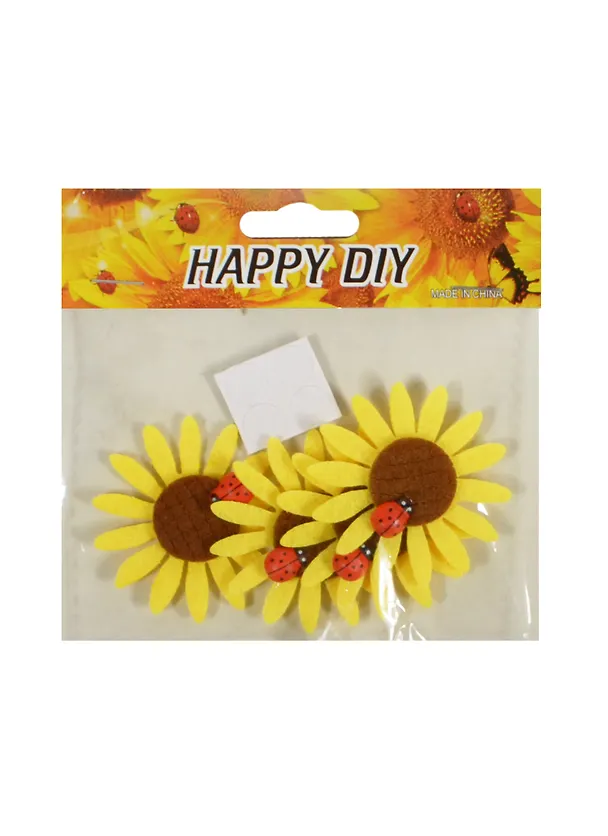 Набор из фетра Подсолнухи с божьей коровкой 4шт. Размер одного цветочка 5,2см, размер божьей коровки 1см.