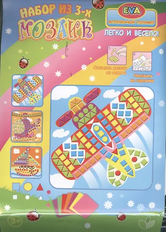 Набор из трех мозаик "Самолетик" не только развивает воображение и мелкую моторику, но и усидчивость.