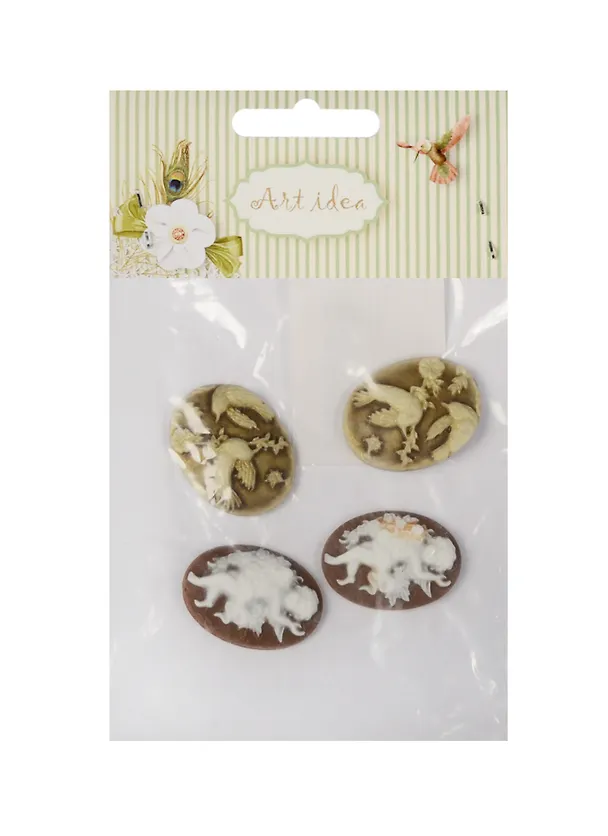 Набор камей 2*2 шт, 1.8*2.5 см, птичка и ангел (11-08631-26)