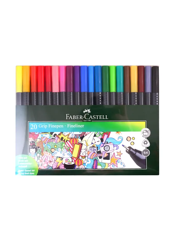 Ручки капиллярные 20цв "Grip Finepen" 0,4мм, трехгранные, Faber-Castell