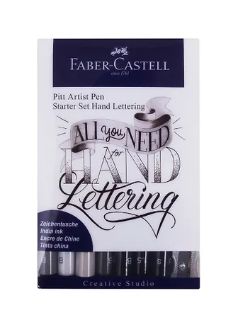 Набор капиллярных ручек "Pitt Artist Pen Lettering" оттенки серого, 7шт.+карандаш+точилка