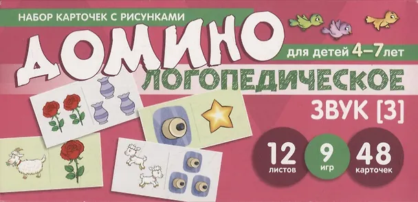 Набор карточек с рисунками. Домино логопедическое. Звук [З]. Для детей 4-7 лет