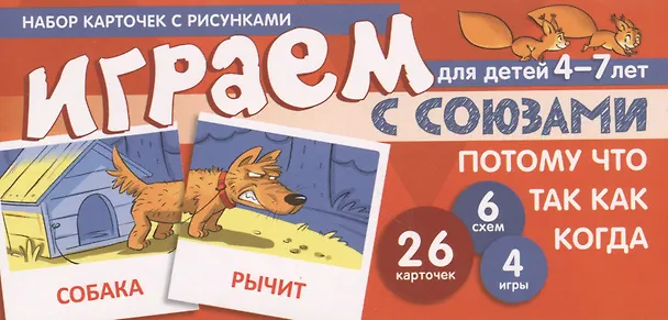Набор карточек с рисунками. Играем с союзами. Союзы ПОТОМУ, ЧТО, ТАК КАК, КОГДА