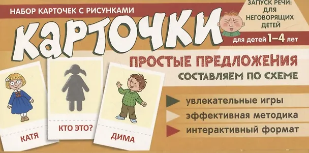 Набор карточек с рисунками. Простые предложения. Составляем по схеме, для детей 1-4 лет