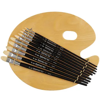 Набор кистей №41, 10 штук, овальные из волоса щетина + палитра деревянная, ЖК