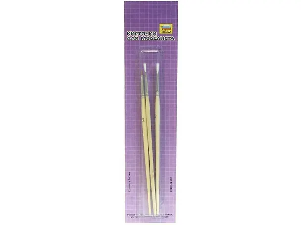 Набор кистей Моделист, ЗВЕЗДА/ZVEZDA, №2, круглые, №1, 3шт