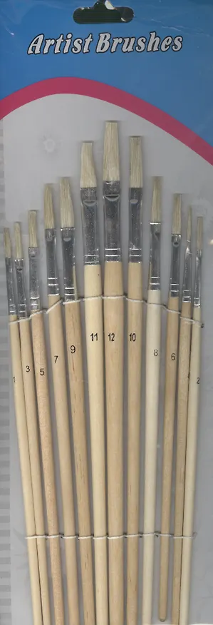 Набор кистей щетина плоск. (12 шт) (670033) (упаковка) (Сима-ленд)