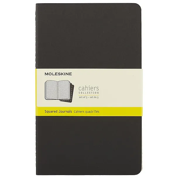 Книга для записей "Cahier Journal Large" (3шт.) .Формат А5 .40 листов клетка .Черная, обложка картон .Moleskine