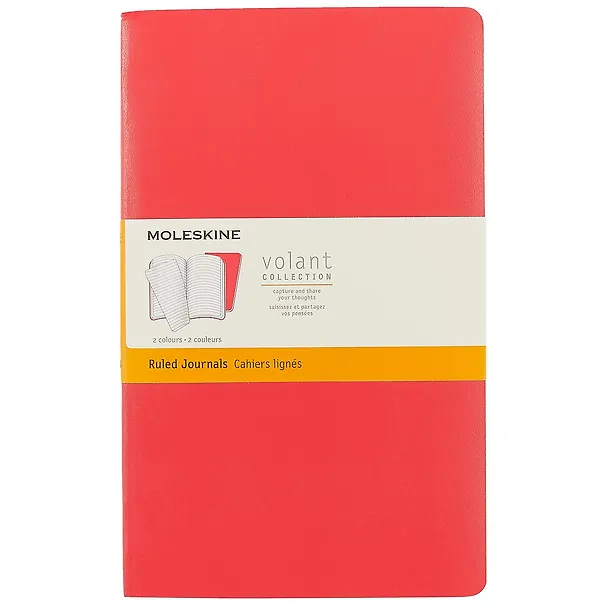 Набор книг для записей Moleskin Volant Large, 2 штуки, мягкая обложка, красные, 48 листов, А5