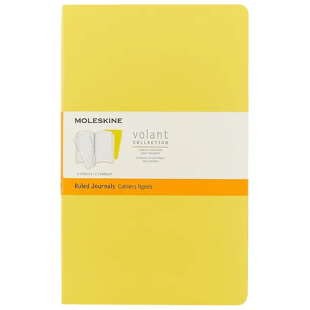 Набор книг для записей Moleskin Volant Large, 2 штуки, мягкая обложка, жёлтые, 48 листов, А5