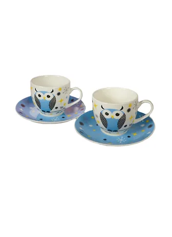 Набор кофейный Совушка голубой на 2 персоны в подарочной упаковке (727-077)