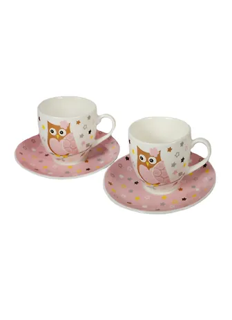 Набор кофейный Совушка розовый на 2 персоны в подарочной упаковке (727-078)