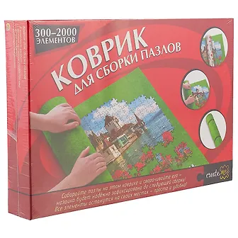 Очень крутая штука для всех любителей сборки пазлов. Сам коврик мягкий, приятный на ощупь, края не обработаны, но не сыпятся. Нравится, что он зеленого цвета - во-первых сами пазлы с ним не сливаются, а во-вторых глаза не устают. В наборе есть надувная штука, которая помогает свернуть всю работу, не теряя уже собраные части. Но есть олин нюанс - надо очень хорошо ее надуть, чтоб она прям упругая была и при свертывании очень плотно прижимать к ней сам коврик, иначе что-то может развалиться. Ну и есть 2 рещинки, которые фиксируют всю эту конструкцию.