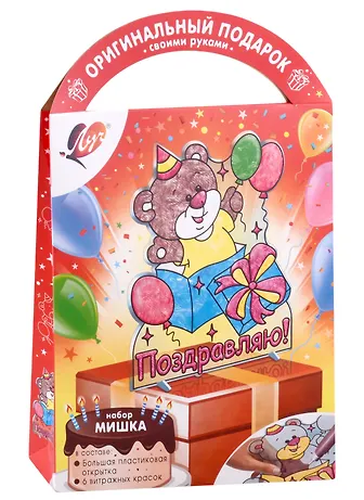 В наборе: большая пластиковая фигурка, 6 туб (по 5 мл) с витражной краской, инструкция.