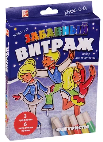 Набор красок по стеклу с трафаретом Забав. витраж Фигуристы 3тр.+6цв 26С 1618-08