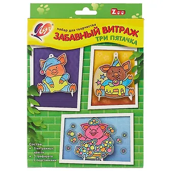 Набор красок по стеклу с трафаретом Забавный витраж. Три пятачка 28С 1680-08