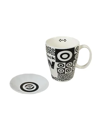 Набор кружкка с блюдцем Black&White (350мл) (8523 B&W) (11 см) (фарфор) GiftLand