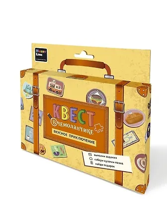 Набор «Кухни мира» (серия «Квест в чемоданчике»). Состав: вводная карточка – 1 шт. (16,7 х 10,5 см), конвертики с заданиями – 8 шт. (17 х 8,5 см), пазл из 8 элементов – 1 шт. (15,5 х 11 см), наклейки для конвертиков и подсказок – 1 лист, инструкция. Материал: картон, бумага. Для детей от 5 до 12 лет, для 1–4 игроков. Игра развивает логику, внимание и аналитическое мышление, учит взаимодействовать в команде, выполнять поставленные задания и двигаться к достижению цели, а также расширяет кругозор.