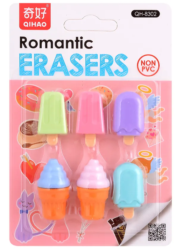 Случайно увидела эти прикольные ластики на сайте. Естественно купила. Теперь это самые любимые ластика у ребенка. Первоначально я думала, что стирать они будут плохо, но на деле показали себя отлично. Стирают не хуже обычных ластиков. На сайте выбирать форму нельзя, нам пришли ластики в виде шоколадки, печенья и мороженого. На столько реалистичные, что хочется их съесть. Запаха жаль не имеют.