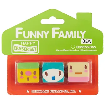 Набор из трех ластиков в виде мордашек "Funny Family", в блистере.