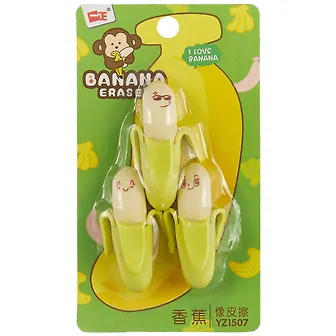Ластики сделаны в виде бананов с забавными мордочками. Посмотрите, какие милые!