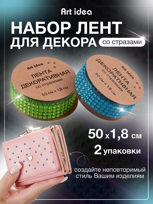 Набор декоративных лент Art idea со стразами — хороший выбор для творчества, украшения аксессуаров и предметов интерьера.