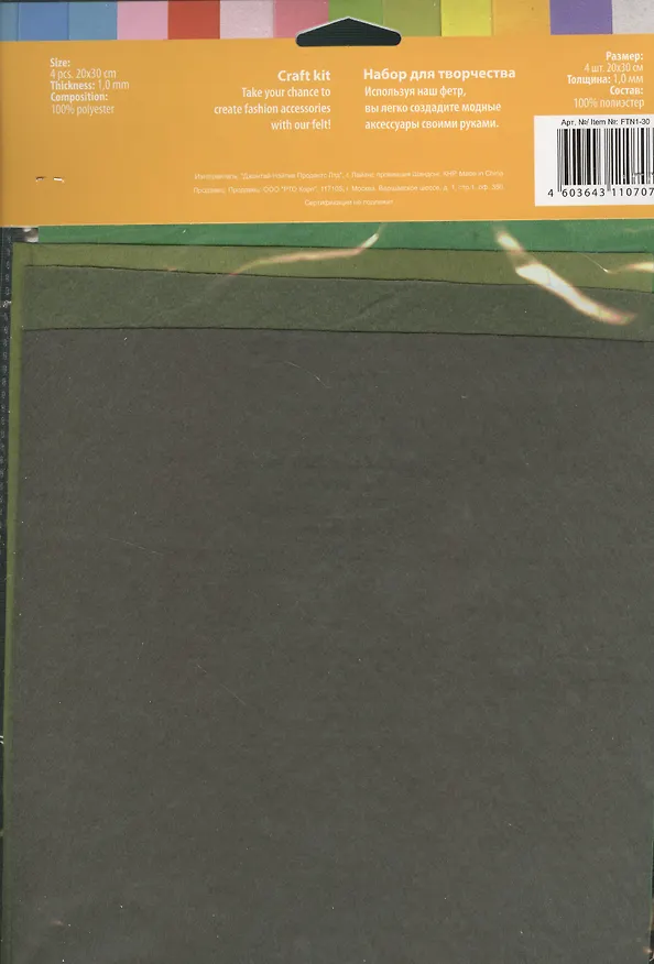 Набор листового фетра (FTN1-30) (4шт) (20х30см) (1,0мм) (упаковка)