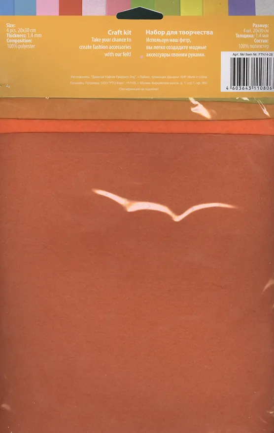 Набор листового фетра (FTN14-26) (4шт) (20х30см) (1,4мм) (упаковка)