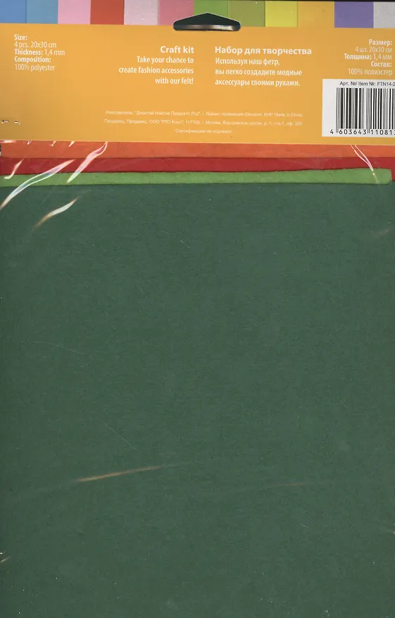 Набор листового фетра (FTN14-27) (4шт) (20х30см) (1,4мм) (упаковка)