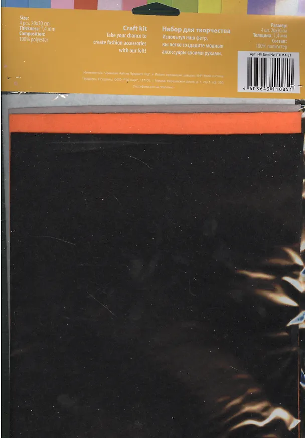 Набор листового фетра (FTN14-31) (4шт) (20х30см) (1,4мм) (упаковка)