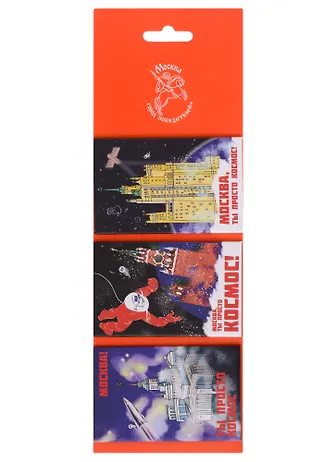 Набор магнитных открыток ТРИО Москва ГП(Спасская башня,ВДНХ,Здание на Котельнической набережной)(Город Победителей)