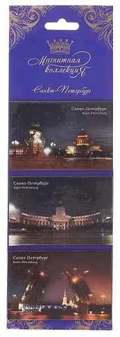 Набор магнитных открыток Трио Санкт-Петербург, арт. НМОТрио-05-01, Ночь (Исаакий, Казанский, Дворцовый)