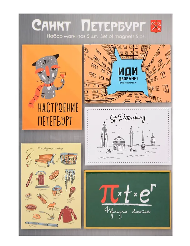 Набор магнитов мет.пл.5шт СПб. Настроение Петербург, цветн.