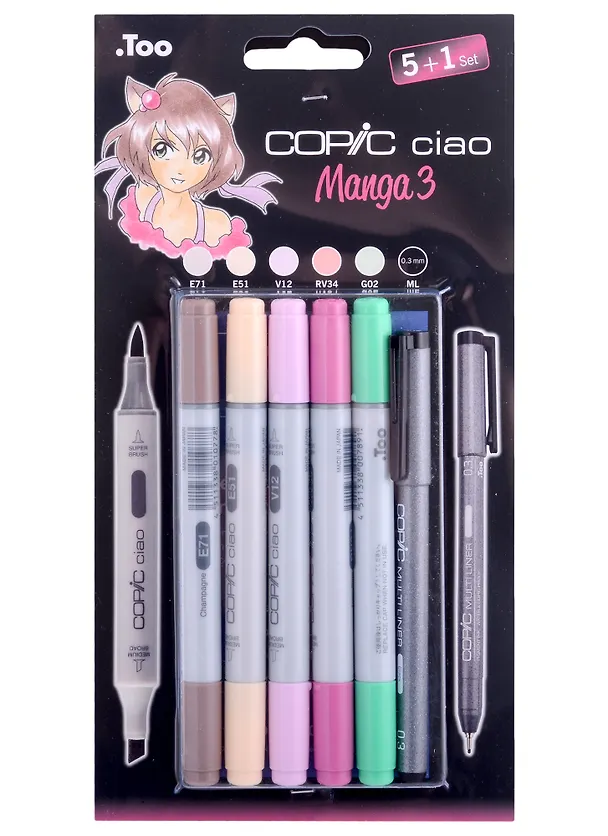 Набор маркеров Copic Ciao манга 3 5цв + мультилинер 0.3мм