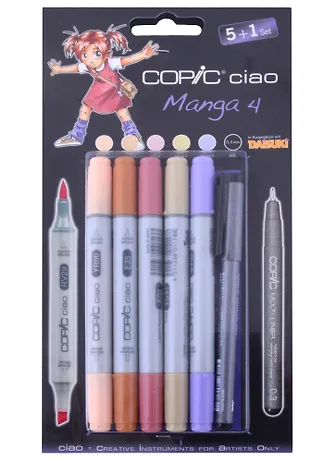 Набор маркеров Copic Ciao 'Manga 4' 5 штук + мультилинер 0.3мм в блистере