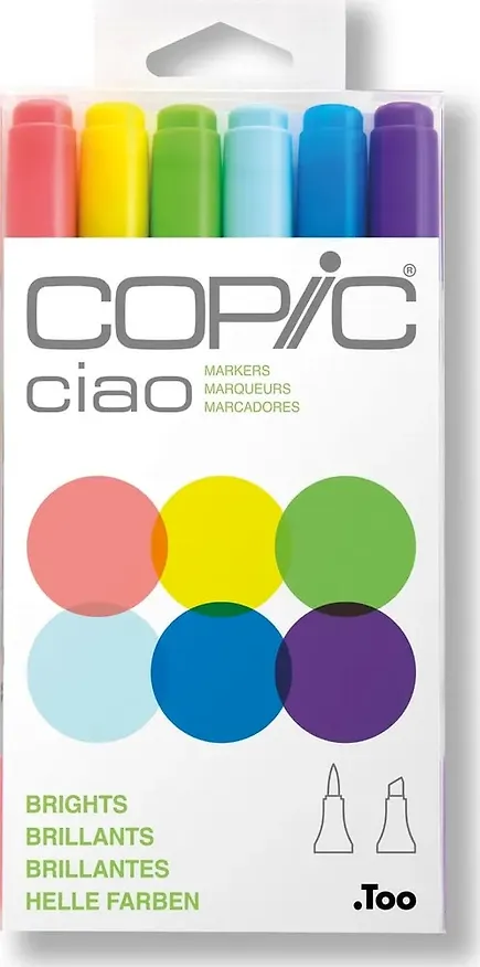Двухсторонние маркеры Copic Ciao созданы специально для начинающих художников и любителей рисовать. При неизменно высоком качестве чернил и пишущего узла цены на маркеры этой серии гораздо демократичнее, чем на другие продукты знаменитого японского производителя Copic