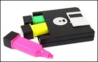 Набор "Дискета" состоит из трех маркеров разных цветов: розового, желтого и зеленого. Набор оформлен в виде дискеты.