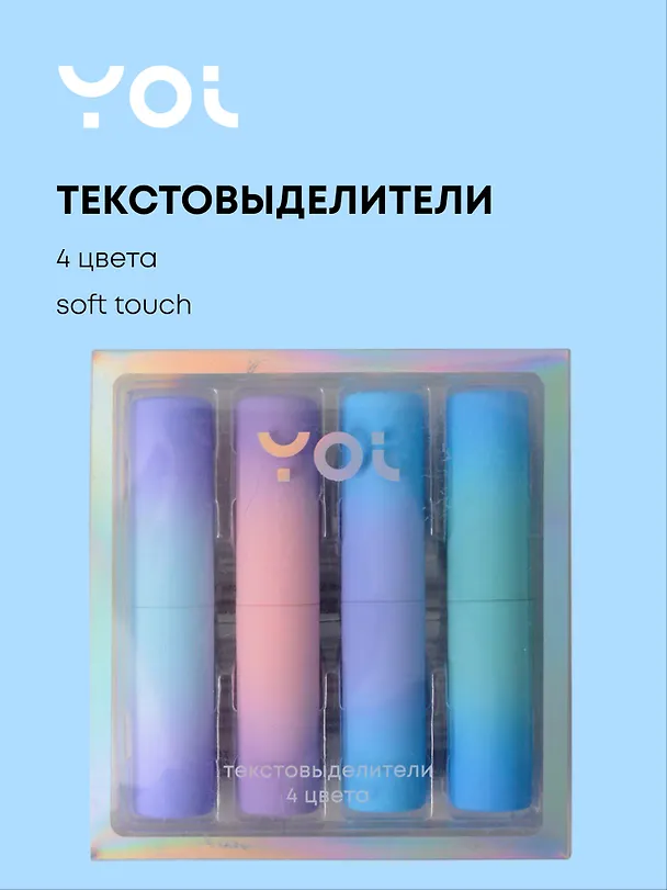 Набор маркеров текстовыделителей 4 цвета "Градиент", скошенный наконечник, поверхность soft touch, холодные оттенки, Yoi