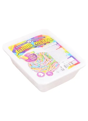 Упаковка, напоминающая лапшу быстрого приготовления. Внутри мармелад жевательный "Спагетти разноцветные" и мармелад жевательный "Блоки разноцветные в сахаре".