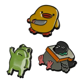 Набор металлических значков (3шт.) (Значок Лягушка Значок Уточка с ножом Значок Голубь с хлебом) (металл) (упаковка)